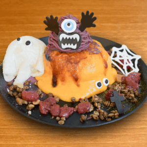 ふわふわな卵がおいしいオムライスに特製キーマカレーソースをたっぷりとかけたピリッと辛いオムライスです!